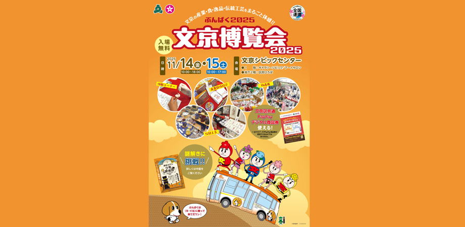 文京区内の中小企業、産業団体等が一堂に会して展示、実演、物販などを行う文京博覧会(通称:ぶんぱく)が開催されます。
