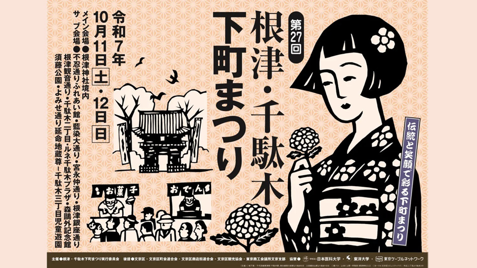 下町の情緒、風情、人情が色濃く残る根津・千駄木地区の特色を活かした「第27回根津・千駄木下町まつり」が「伝統と笑顔で彩る下町まつり」をサブテーマに開催されます。
